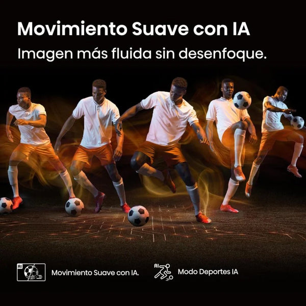 Movimiento Suave AI con MEMC y reducción de ruido 3D. La tasa de refresco adaptativa VRR (60Hz nativos, hasta 120 fps) y el procesamiento MEMC aseguran transiciones fluidas incluso en escenas rápidas. Este Smart TV minimiza el desenfoque por movimiento y las imágenes fantasma, ideal para deportes o videojuegos competitivos.