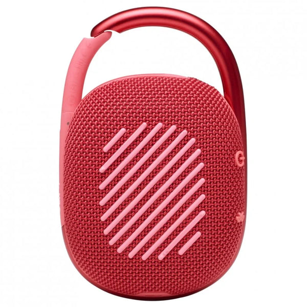 Fresco, portátil e impermeable. El vibrante y fresco JBL Clip 4 ofrece un sonido JBL Original Pro Sound sorprendentemente rico en un paquete compacto. La forma ovalada única se adapta fácilmente a tu mano. Totalmente envuelto en telas de colores con detalles expresivos inspirados en la moda callejera actual, es fácil combinar con tu estilo. El mosquetón totalmente integrado se engancha instantáneamente a bolsos, cinturones o hebillas, para llevar tus canciones favoritas a cualquier lugar. Resistente al agua, al polvo y hasta 10 horas de tiempo de juego, es lo suficientemente resistente como para acompañarlo donde sea que explore.