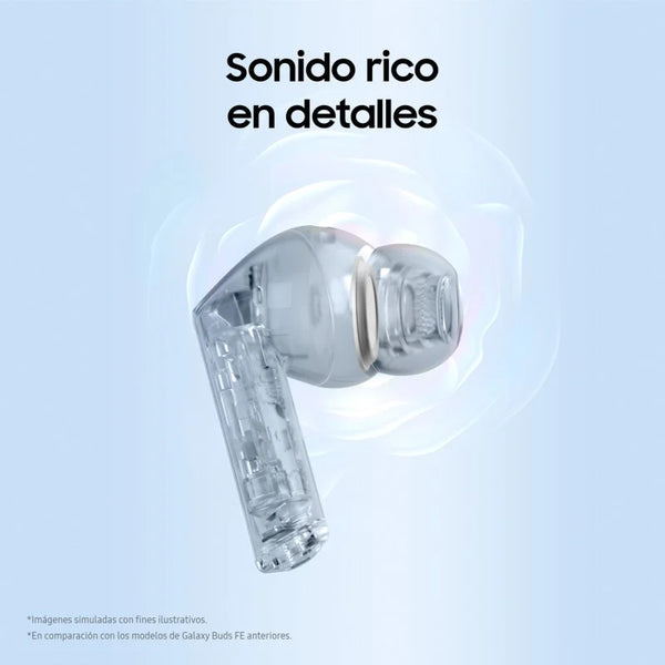 Siempre a la moda. Galaxy Buds3 FE está disponible en los colores Negro y Gris. Ambos modelos presentan un acabado mate para dar un toque de elegancia y sofisticado. ¡Escoge tu favorito y lleva tu sonido a todas partes!