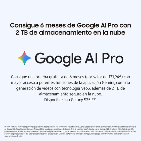 Inteligencia que te entiende. Galaxy S25 FE llega con Galaxy AI integrada, tu nuevo asistente personal para cada momento del día. Controla tu smartphone con la voz, traduce conversaciones en tiempo real, accede a resúmenes inteligentes y busca cualquier cosa con un simple círculo en pantalla. Una IA diseñada para estar a tu alcance y hacer tu rutina más fácil, rápida y productiva.